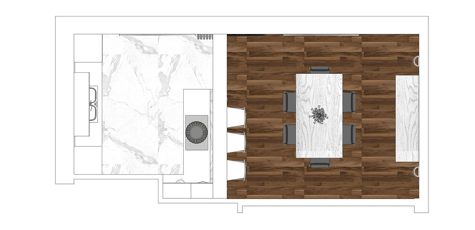 Il connubio tra unicità, eleganza e ricerca del dettaglio ha dato vita ad una cucina e zona pranzo da sogno. Il bianco e l'argento sono i protagonisti di questo progetto, incorniciato dalla carta da parati bianco e nera e dal pavimento che dà carattere al tutto.